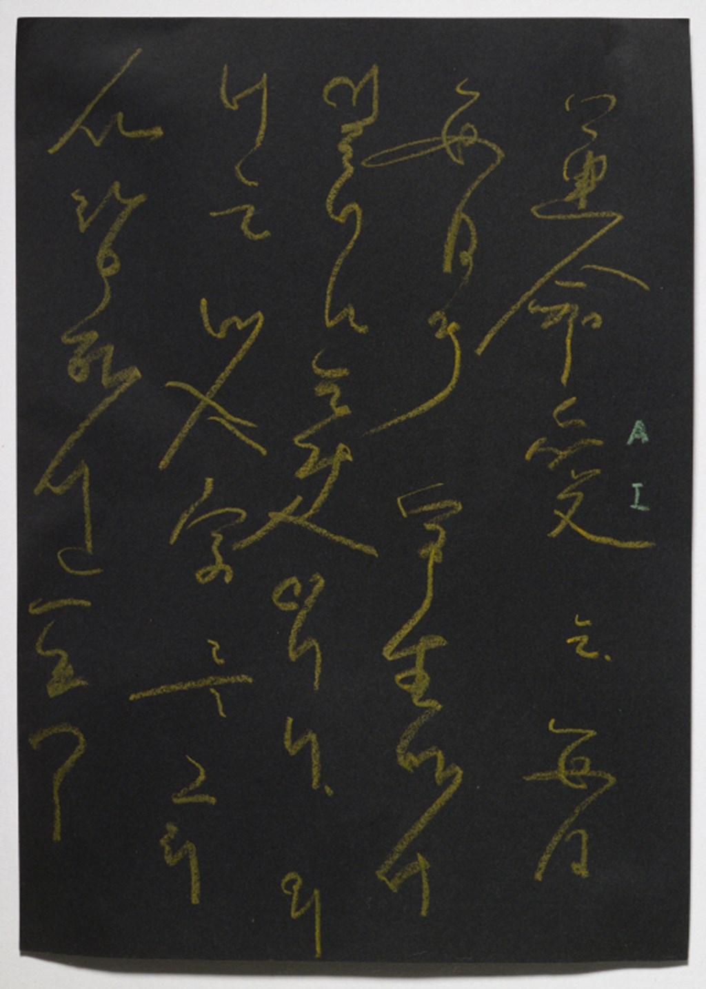 - Nam June Paik often incorporated mixed alphabets and letters of Chinese, Korean, and English into his works. This calligraphic work contains strong cursive writing. Notable words are “love,” “every day,” and especially the first word, “Amor Fati,” in Chinese characters. Part of Nietzsche’s philosophy, the word refers to the love of fate, which is more than just accepting it but affirming and embracing it as one’s own, and cultivating it to grow into creativity. Interestingly, Paik added “AI,” which is Japanese pronunciation of ‘love’, in English next to 愛, to love.